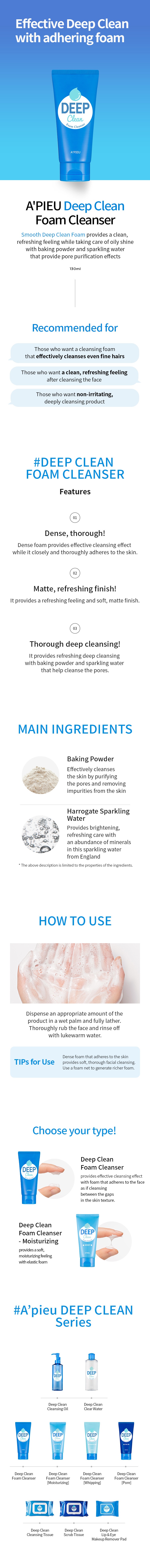 A'PIEU MISHEN Deep Clean Foam Cleanser - Experience a deep and refreshing cleanse with a rich, dense foam that clings to the skin, deeply purifying pores for a smooth, matte finish 130 ml.
