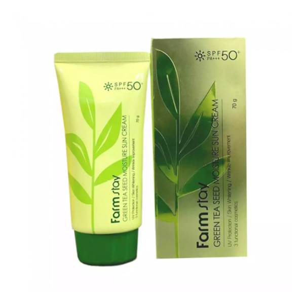 FARM STAY Tea Seed Moisture Sun Cream SPF 50+/PA+++ ☀️✨ Ultimate Sun Protection & Hydration – Your Daily SPF Shield! ☀️✨ Protect, hydrate, and prime your skin with this multi-functional makeup base sun cream. Offering SPF 50+ protection with titanium dioxide and zinc oxide, it effectively shields your skin from harmful UV rays while ensuring a lightweight, comfortable wear—perfect for daily use!