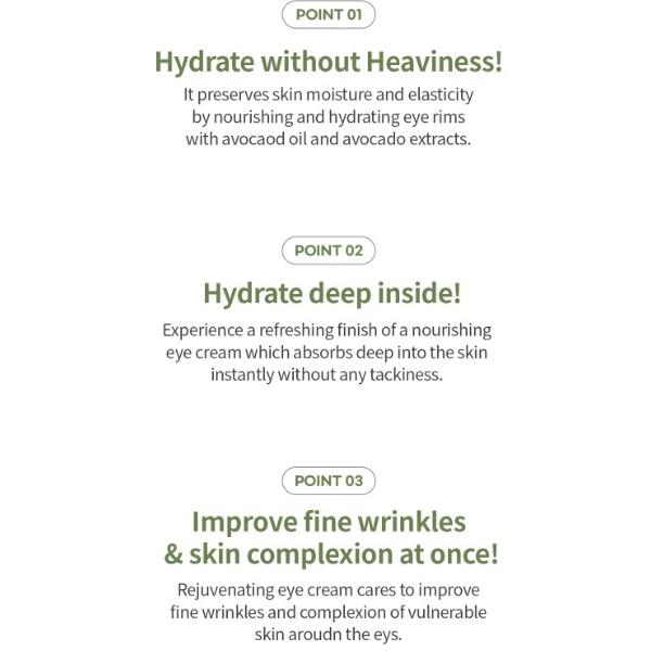 Revive your eyes with the power of avocado. Smooth, bright, and youthful skin is just a step away with Farmstay Real Avocado Nutrition Eye Cream.