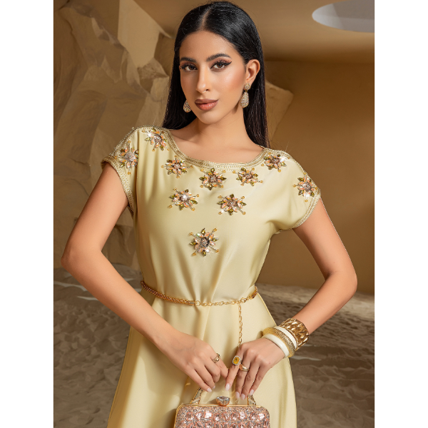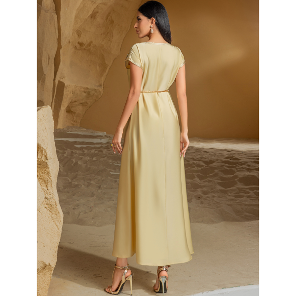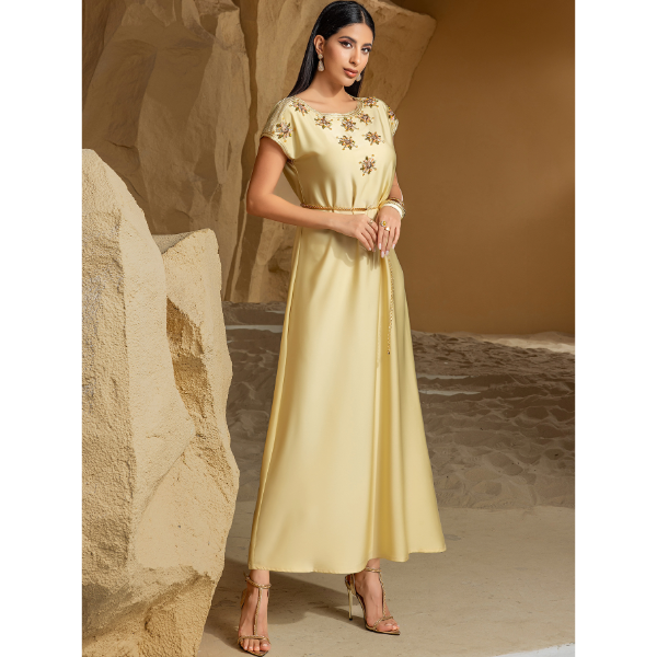 Step into effortless elegance with MISHEN’s ALLURE Saffron Glow, a timeless maxi jalabiya designed for modern sophistication and everyday comfort.
